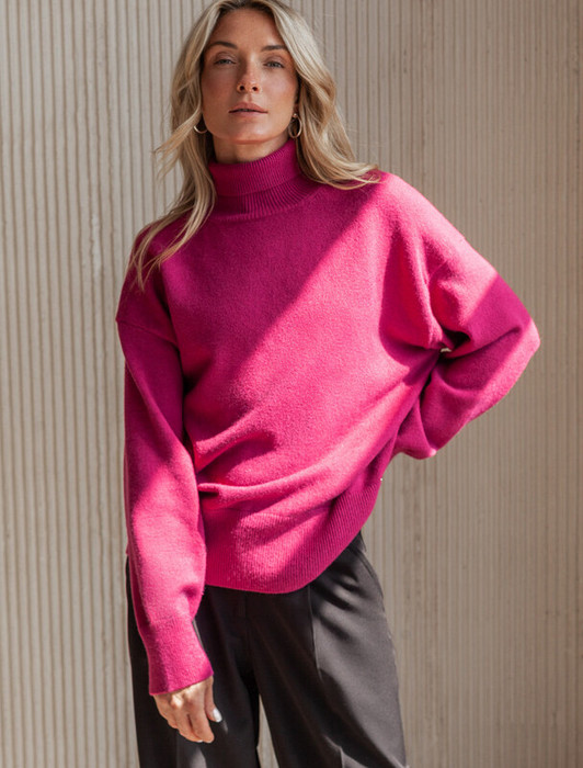 Совместные покупки Уфа Женская одежда Джемперы, свитеры, водолазки — Vilatte Свитер из пряжи с кашемиром D34.206 фуксия