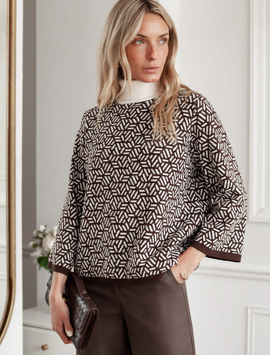 — Vilatte Свитер жаккардовой вязки с кашемиром D34.208 кофейный