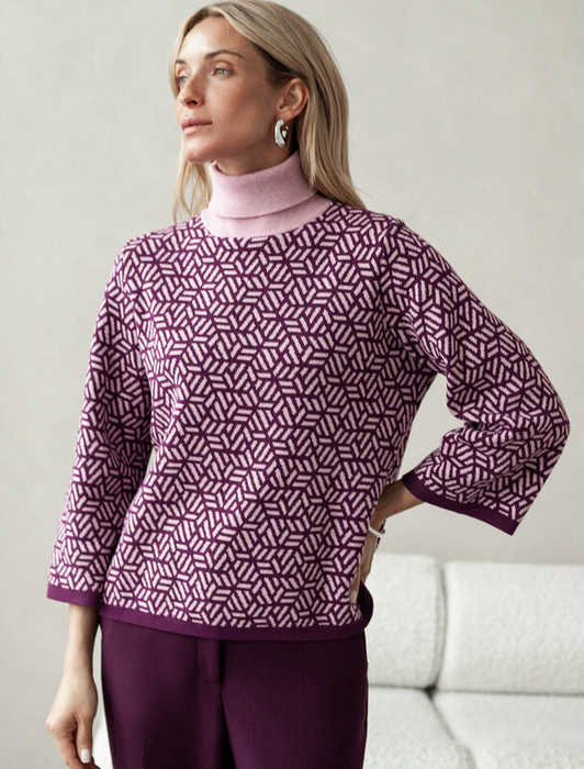 — Vilatte Свитер жаккардовой вязки с кашемиром D34.208 пурпурный