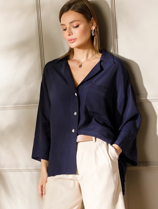 — Vilatte Свободная блузка из премиальной вискозы и лиоцелла D29.234 т.синий