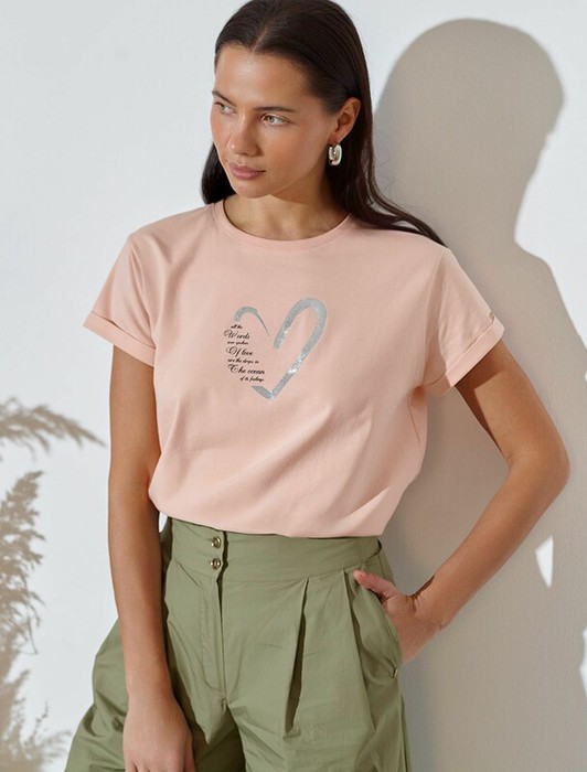 22.03 Vilatte Свободная футболка с принтом из премиального хлопка с эластаном D