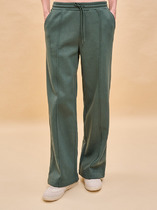 Брюки свободного кроя выполнены из эластичного футера-двухнитки. Модель дополнена защипами и боковыми карманами как у классических брюк и одним задним карманом. Эластичный пояс на резинке с шнурком из репсовой ленты и металлической фурнитурой. Брюки сочетаются в костюме с футболкой D49.031, D49.085, бомбером D49.038 и паркой D49.075