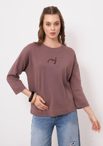 Совместные покупки Уфа Женская одежда Джемперы, свитеры, водолазки — Vilatte Свободный свитшот с принтом и разрезами из эластичного футера двухнитки