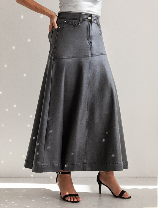 — 27.03 Vilatte Юбка-годе из эластичного хлопка с металлизированным покрытием D56