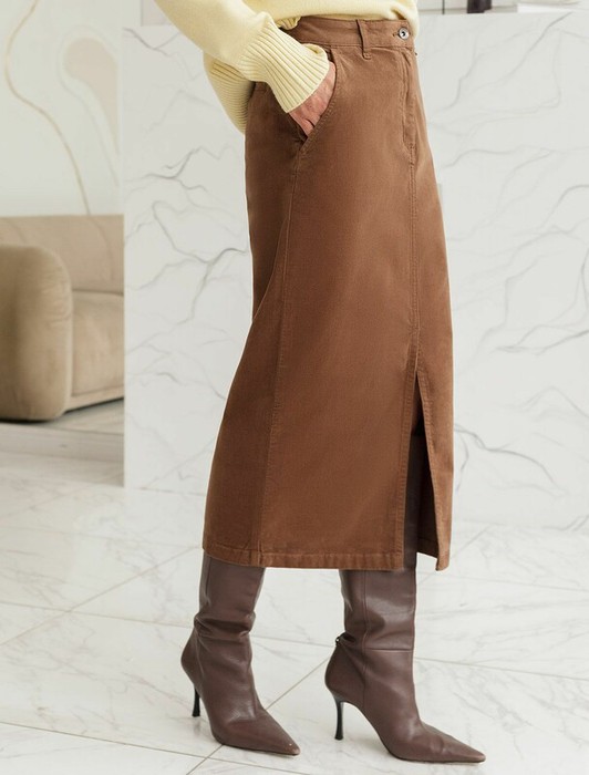 Юбка прямого кроя с выполнена из мягкого хлопкового микро-вельвета с добавлением эластана. Модель дополнена высоким разрезом спереди. Изделие комфортно садится по фигуре и не сковывает движения. Хорошо комбинируется с вязаным трикотажем, блузками и денимом. Также прекрасно станет альтернативой деловым низам в нестрогом офисном дресс-коде.