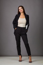 Брюки выполнены из плотной эластичной хлопковой ткани с нейлоном. Зауженная модель визуально вытягивает силуэт и стройнит ноги. Плотная и при этом эластичная ткань отлично держит форму в течении всего дня гарантируя абсолютный комфорт, не сковывая движений.