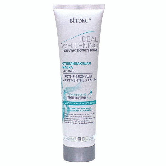 Линия: Ideal Whitening Отбеливающая маска выравнивает цвет лица и придаёт коже здоровый вид, осветляет пигментные пятна и веснушки, являющиеся результатом воздействия ультрафиолетовых лучей и негативного влияния факторов окружающей среды, провоцирующих пигментацию.
