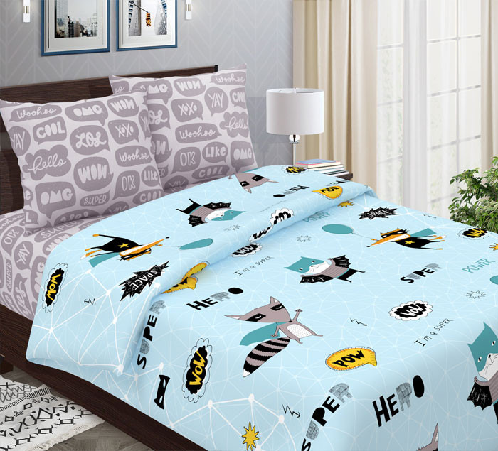 Совместные покупки Уфа Товары для дома и дачи Постельное белье — ВЛАДЛЕН Детское постельное белье из бязи 1,5сп с 1 наволочкой Супергерои(голубой