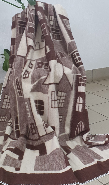 ВЛАДЛЕН Одеяло 70% шерсть Домики бежево-коричневые
