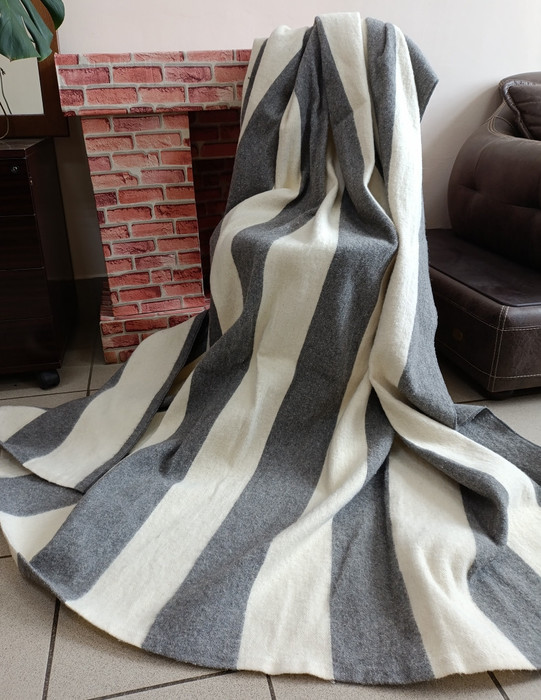 ВЛАДЛЕН Одеяло полушерстяное (70% Шерсть) - Бело-Серая полоса
