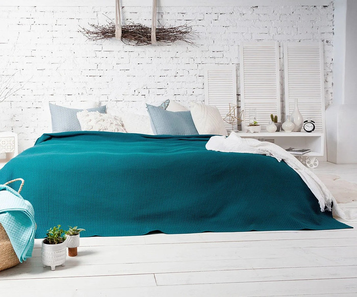 Большая вафельная простыня( покрывало) выполнена из 100% натурального хлопка. Однотонная простыня прекрасно впишется в любой интерьер, Натуральная ткань прекрасно впитывает влагу, быстро сохнет, выдерживает многочисленные стирки без потери формы и цвета.