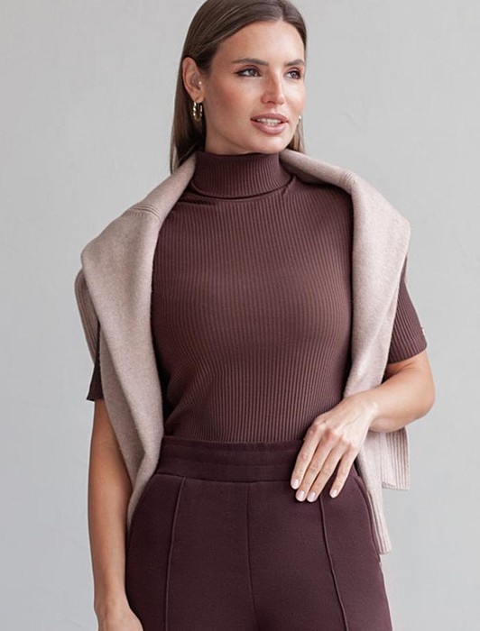Состав: 95%Хлопок 5%ПУ Плотность: 230 Г/м2Водолазка с коротким рукавом выполнена из фактурного трикотажа в рубчик. Модель идеально сидит по фигуре не сковывая движения. Хлопковый трикотаж поддерживает оптимальную температуру тела, поэтому в изделии будет комфортно в течении всего дня. Наличие эластана в составе гарантирует формоустойчивости. Водолазка отлично впишется в деловой дресс-код и подойдет для повседневного аутфита.