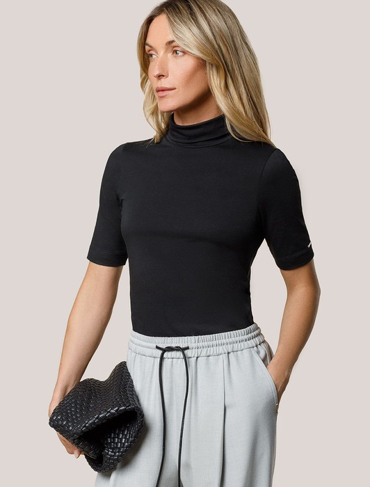 Состав: 92%Хлопок 8%ПУ Плотность: 170 Г/м2 Параметры модели на первом фото: Рост 172, бюст 88, талия 64, бедра 88Водолазка с коротким рукавом выполнена из премиального хлопка с добавлением эластана. Гладкий трикотаж обеспечит гарантированный комфорт и удобство в использовании. Внизу изделия металлическая нашивка с логотипом бренда. Совет стилиста: водолазка может заменить рубашку в нестрогом офисном образе или подружиться с джинсами-трубами, жилетом и кедами в расслабленном повседневном наряде.
