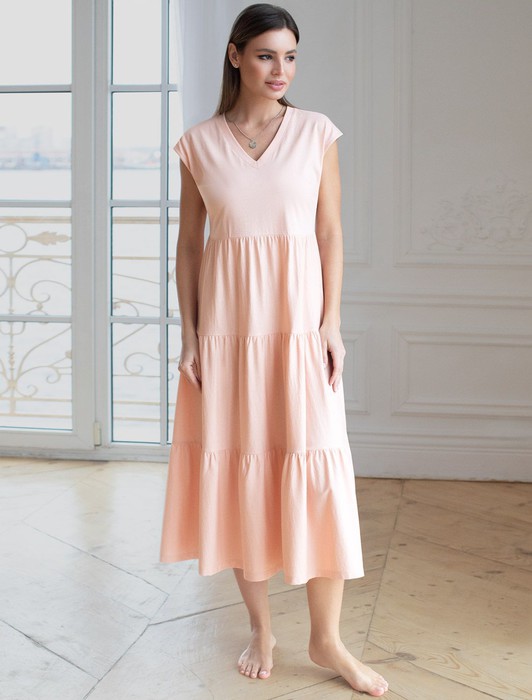 Ярусное платье А силуэта с V вырезом из 100% премиального хлопка
