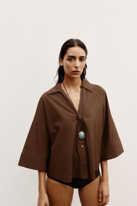 zara POPELINHEMD MIT WEITEN RMELN Braun | 2246/534/700