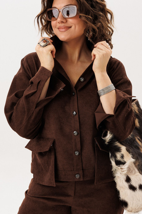 Этот джут невероятно удобный и приятный в носке: его можно сочетать с брюками 1815 из той же ткани для цельного образа или накидывать поверх платья, создавая уютный и современный повседневный стиль.