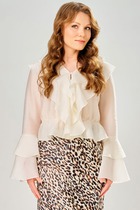 Прямой силуэт со спущенным плечом создает мягкую линию, отложной воротник и притачная планка на пуговицы делают модель аккуратной и универсальной. Длинный втачной рукав с манжетой добавляет собранности, а карманы в боковых швах - удобства на каждый день.