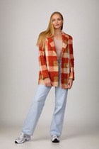 Жакет прямого силуэта, на подкладке. Вырез горловины округлой формы. Перед с центральной застежкой на петли и пуговицы и нагрудными вытачками. Рукав втачной длинный, по низу рукава обработана шлица с пуговицами.