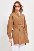 Джемпер укороченный прямого кроя, выполнен из мягкого полотна бежевого цвета.Горловина плосколежащая. Застежка центральная на петли пуговицы. Рукав реглан. По переду накладные закргулённые карманы. Длина спинки 48 см, длина рукава (от горловины) 36 см