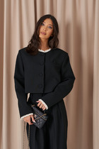 Джемпер прямого кроя выполнен из мягкого трикотажного полотна. Характеристика: прямой крой, овальная горловина, застежка центральная на петли - акцентные пуговицы. Рукав втачной, спущен. Спинка цельнокраеная. Длина по спинке 47см, длина рукава от края горловины 76см.