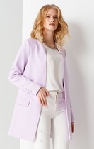 Жакет прямого свободного кроя выполнен из ткани с геометрическим принтом. Характеристики: прямой крой, подплечники, подкладка, отложной воротник с крупным остроугольным лацканом, застежка центральная на петли пуговицы, по передней части изделия прорезные карманы с клапаном, рукав втачной, по низу рукава нашиты пуговички, по низу среднего шва заднего полотна изделия разрез 29 см. Длина по спинке 79 см, длина рукава 61 см.