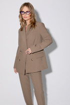Жакет прямого свободного кроя, выполнен из джинсовой ткани светлого денима с вточными рукавами из пальтовой ткани розового цвета. Характеристики: прямой крой, отложной воротник, по переду крупные накладные карманы с клапанами, застёжка центральная на пуговицы, по боковым линиям талии кулиска с фиксатором затягивающаяся изнутри, рукав свободный, заужен к низу. Длина изделия 70 см, длина рукава 65 см.