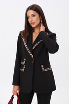 Жакет прямого свободного кроя выполнен из льняного (смесового) полотна бежевого цвета в розово-песочную полоску. Характеристики: прямой свободный крой, подкладка, подплечники, воротник с остроугольным лацканом, застежка центральная на петлю - пуговицу, по переду функциональные карманы с клапаном, рукав втачной, по низу рукава нашиты пуговички, спинка со средним швом, в среднем шве шлица 48 см. Длина по спинке 77, длина рукава 62 см.