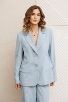 Двубортный жакет на подкладке, прямого силуэта. Обработаны прорезные карманы по переду. Рукава втачные одношовные, обработаны шлицей
