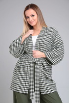 Жакет 2-бортный, на подкладке. Рукав длиннный, втачной, одношовный, по окату собран складками дляя увеления объёма. Обработаны талиевые вытачки по переду и спинке изделия