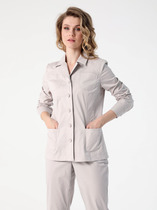 Стильный классический жакет, прекрасный вариант на каждый день. Модель прямого силуэта с центральной бортовой застежкой на петли-пуговицы и с фигурным клапаном. Низ изделия обработан отрезной деталью, спинка со средним швом, переходящим в шлицу с оформлением декоративными пуговицами. Рукав втачной, полной длины. Жакет частично на подкладке (полочки и спинка).