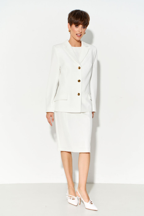 Классичесий женский жакет на подкладке полуприлегающего силуэта выполнен из костюмной ткани с содержанием вискозы. По переду функциональные прорезные карманы; воротник пиджачного типа; застежка на петли и пуговицы; рукава втачные. Жакет  полностью соответствует заявленному размеру. Пожалуйста, пользуйтесь таблицей обмеров готового изделия.