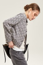 Жакет в стиле smart casual. Жакет прямого силуэта с пиджачным воротником, имеет удобные накладные карманы и застежку на 2 пуговицы. На левом лацкане вышивка-логотип в цвет ткани. Низ и борта имеют открытые края (эффект необработанного шва), укреплены дополнительной строчкой. Жакет без подкладки.