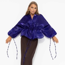 Облегченный жакет, по типу бомбера с застежкой на металлическую молнию, выполнен из хлопковой ткани с вышивкой ришелье. Рукав на спущенном плечевом поясе. Вырез горловины, низ изделия и рукавов оформлен мягкой притачной планкой из кашкорсе. Спинка без особенностей.