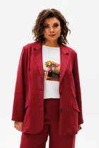 Жакет однобортный умеренного объёма приталенного силуэта с застёжкой на пуговицу. По бокам расположены функциональные прорезные карманы с клапаном. Окантовка воротника и клапанов карманов выполнена из контрастной ткани с леопардовый принтом. Рост фотомодели 175 см. Размер у фотомодели – 44.