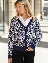 Vilatte Жакет тонкой и эластичной жаккардовой вязки D31.388 синий-белый