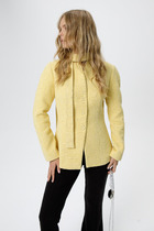 Женский жакет из поливискозной ткани, идеально подходящий для повседневной и деловой носки. Центральная застежка выполнена на одну обметанную петлю и одну металлическую декоративную пуговицу, что придает модели элегантный вид. Край борта оформлен фигурной линией, добавляющей изящества. Передняя часть украшена двумя рельефами, не доходящими до низа, и одним выходящим из бокового шва рельефом, создающим интересные объемы и линию силуэта. Спинка выполнена со средним швом и тремя рельефами, что обеспечивает хорошую посадку и стильный дизайн. Горловина обработана пиджачным воротником, а длинные втачные рукава дополняют образ. Жакет на подкладке, что обеспечивает комфорт и аккуратность посадки. Модель выполнена в классическом черном цвете, что делает ее универсальной для различных образов и ситуаций.