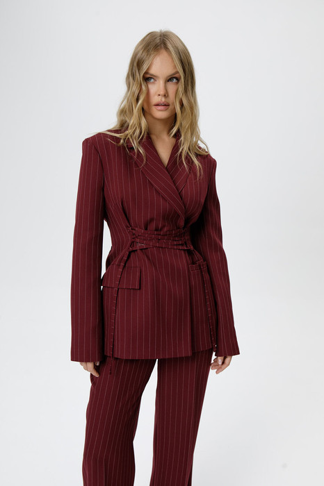 Жакет со шнуровкой из текстильной ткани в полоску.