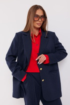 Детали: жакет полуприлегающего силуэта, расширенные плечи, рельефы, пиджачный воротник, застежка на две петли и пуговицы, функциональные карманы, жакет на подкладке. Жакет также можно зашнуровать по бокам.