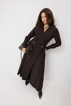 Приталенный жакет с воротником-стойкой и съемным шарфиком.