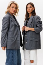 Детали: жакет прямого силуэта, расширенная линия плеч, пиджачный воротник, перед с функциональными карманами, однобортная застежка на петли и пуговицы, спинка со средним швом и шлицей, рукава втачные двухшовные, жакет на подкладке