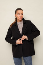 Стильный жакет полуприлегающего силуэта, выполнен из костюмной ткани. Смещенная застежка на петлю и пуговицу. Воротник пиджачного типа с отложными лацканами, край борта скругленный по низу жакета. Спереди обработаны прорезные карманы в рамку с клапанами. Рукава втачные, двухшовные со шлицами с застежкой на петли и пуговицы. Спинка с рельефами и средним швом. Жакет на подкладке.