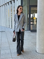 Стильный жакет полуприлегающего силуэта, выполнен из костюмной ткани. Смещенная застежка на петлю и пуговицу. Воротник пиджачного типа с отложными лацканами, край борта скругленный по низу жакета. Спереди обработаны прорезные карманы в рамку с клапанами. Рукава втачные, двухшовные со шлицами с застежкой на петли и пуговицы. Спинка с рельефами и средним швом. Жакет на подкладке.