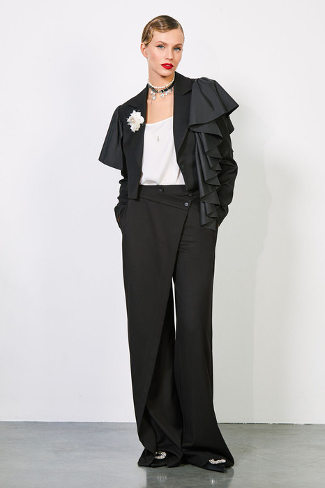 - воланы со сборкой в рельефе левого и пройме првого рукавов