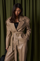 - сзади вышивка и кожаная аппликация с логотипом бренда и пата с полукольцом