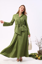 Жакет из костюмной ткани на подкладке. Жакет прямого силуэта с двубортной застежкой на 2 петли и пуговицы и одну потайную. По переду- прорезные карманы с клапанами. Воротник-с отложными лацканами пиджачного типа, двухшовные, длинные.