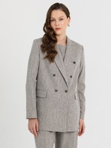 Жакет женский свободного прямого силуэта, на подкладке. Застежка на петли и пуговицы, воротник с лацканами пиджачного типа. Рукав длинный втачной двухшовный. Перед с функциональными прорезными карманами с листочкой. Спинка со средним швом.