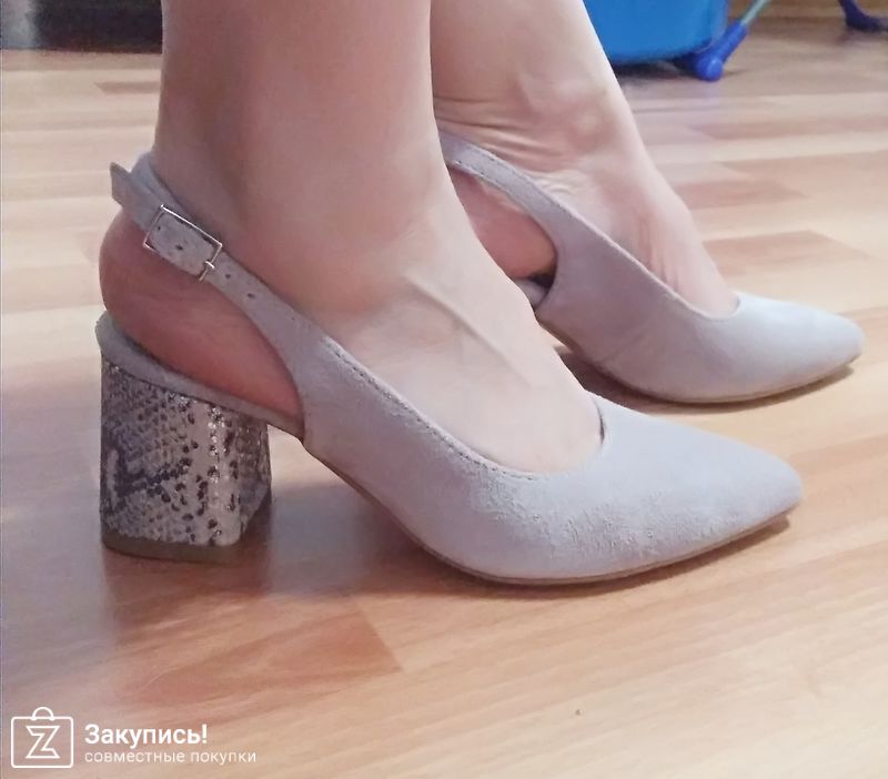 Туфли прелесть! Верх замша розовый туман. Каблуки анаконда пудра. На стопу 23.7 примерно заказала 36 размер. Сели хорошо. Не жмут. Если были бы туфли с закрытой пяткой такие взяла, то наверное заказала бы 37, не люблю разнашивать)) , а эти хорошо сели. Нога у меня средней полноты. Оксана, ты супер орг!!!