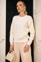 Свободный крой со спущенной линией плеча создаёт просторный силуэт, в котором можно двигаться, как хочется! Белый свитер оверсайз (oversize) – только легкость и максимальное удобство. Ворот хомут защитит от прохладного ветра.