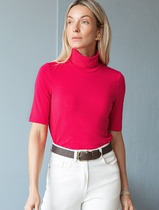 Модель объёмного силуэта со спущенной линией плеча поможет создать романтичный образ. Модель дополнена ребристой отделкой выреза, низа и манжет.