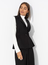 Жилет с воротом стойка выполнен из мягкой пряжи с кашемиром. Модель дополнена боковыми разрезами. Хорошо сочетается лонгсливами и блузками. Мягкая пряжа очень приятная к телу, поддержит комфорт на протяжении всего дня, при этом не перегревая. Сочетается в костюме с брюками D38.013, D38.012 и юбкой D36.016
